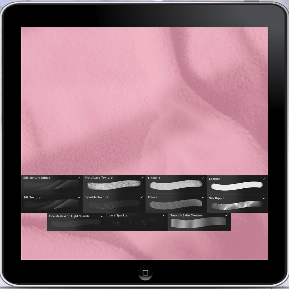Silk, Fleece and Lace textures. Some of these brushes may work best over a darker base colour, others a lighter base colour. Play around with them to see what works for you.